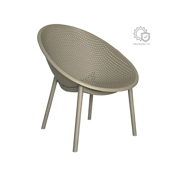 Poltrona Drops em polipropileno (PP) com design moderno em formato de concha e estrutura perfurada que proporciona leveza visual e ventilação. Ideal para áreas externas, varandas, jardins e espaços de lazer. Resistente, confortável e de fácil manutenção.